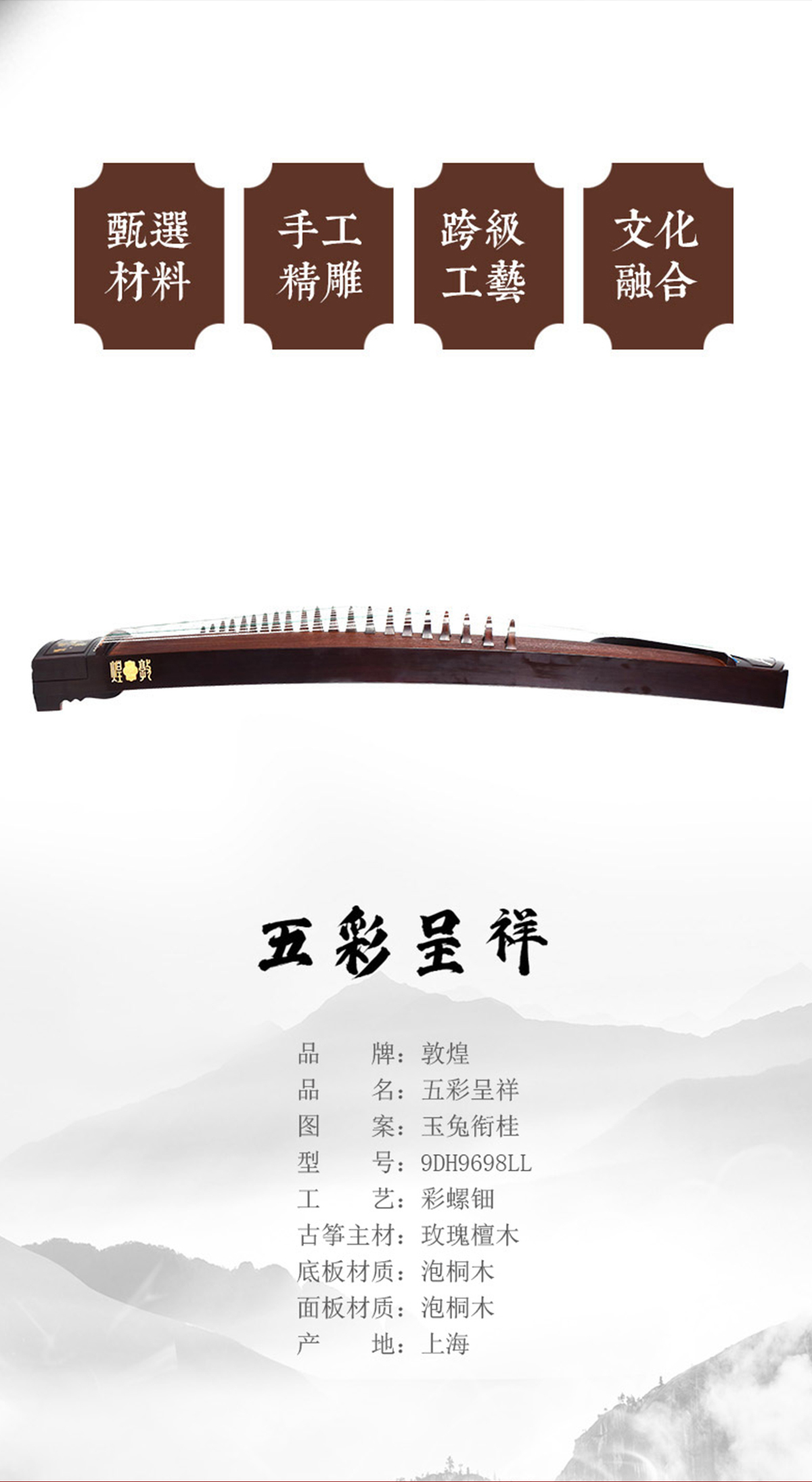 敦煌古箏9DH9698LL玉兔銜桂
